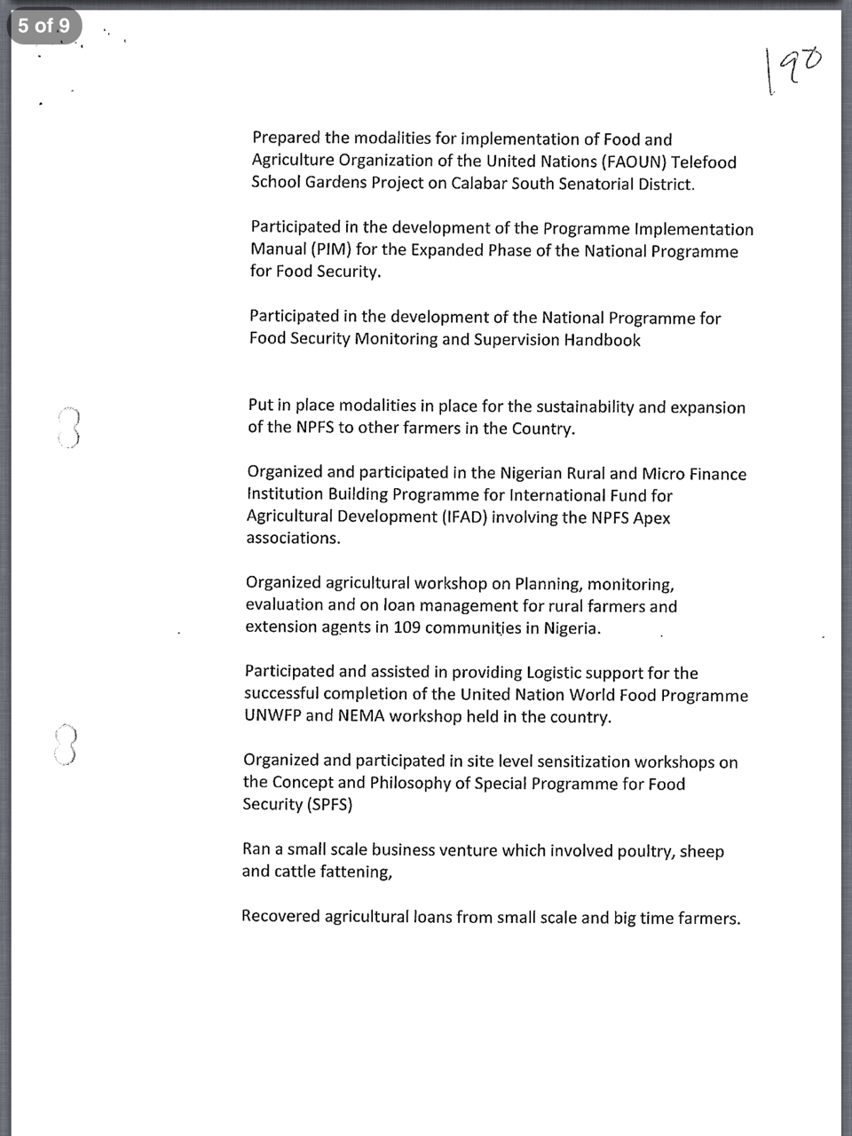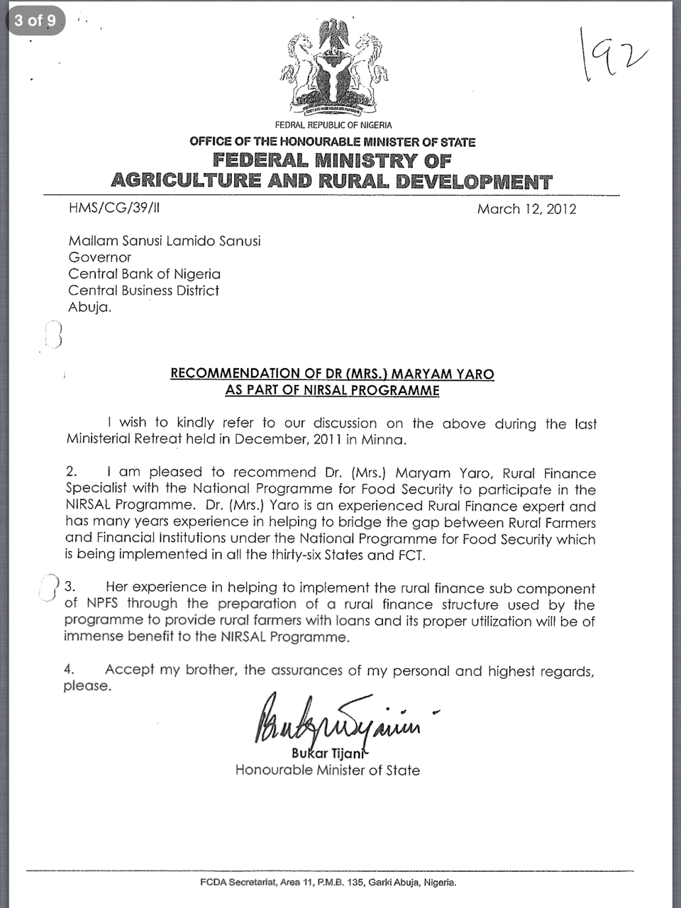 ii. In the course of establishing NIRSAL, the Hon. Minister of State for Agriculture and Rural Development, through a formal letter, recommended Dr. Yaro to participate in the project as a Specialist on Rural Finance Access.